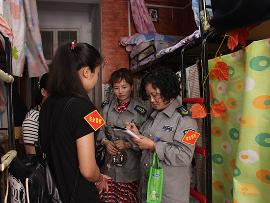 每逢迎新季,总会有校外人员来公寓楼给新生兜售各种商品,不但破坏了公寓的正常秩序,而且对公寓住宿学生带来安全隐患。从去年开始,郭超和安全督查岗的同学每天都会巡视楼宇安全,同时临时用工也多了一份责任,“双管齐下”不让非公寓人员随便进入,有效提升了公寓楼内的安全系数。