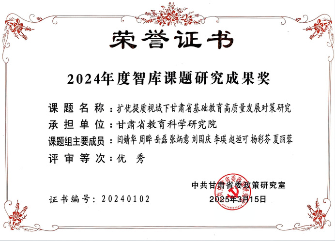 西北师大教师参与课题荣获甘肃省2024年度智库课题研究成果奖