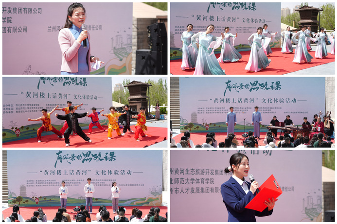 活动现场,马克思主义学院副教授常精彩以“黄河文化源远流长”为题开展现场教学,深入阐释了黄河文化兼容并包、刚柔相济、自强不息的精神品格,鼓励新时代青年赓续黄河精神,为构建中华民族现代文明贡献青年智慧和青年力量;体育学院学生通过武术《黄河魂》演绎刚健勇毅的黄河精神;“小红马”理论宣讲团与“青春的力量”优秀大学生宣讲团聚焦“习近平生态文明思想”的甘肃实践,以小案例宣讲大主题,生动讲述了甘肃人民牢记总书记“让黄河成为造福人民的幸福河”的殷殷嘱托,在躬耕实干中推动沿黄地区从“一水共护”迈向“全域共富”的奋进故事;秦腔社成员以一首秦腔版《上春山》舞出传统戏曲的新风采;国家级非遗传承人陈增三与音乐学院“鼓”韵声声艺术工作坊的学生联袂献上兰州鼓子小唱《奋楫笃行续辉煌》,在唱、跳、演、奏中展现新时代青年传承中华优秀传统文化的青春活力与使命担当。