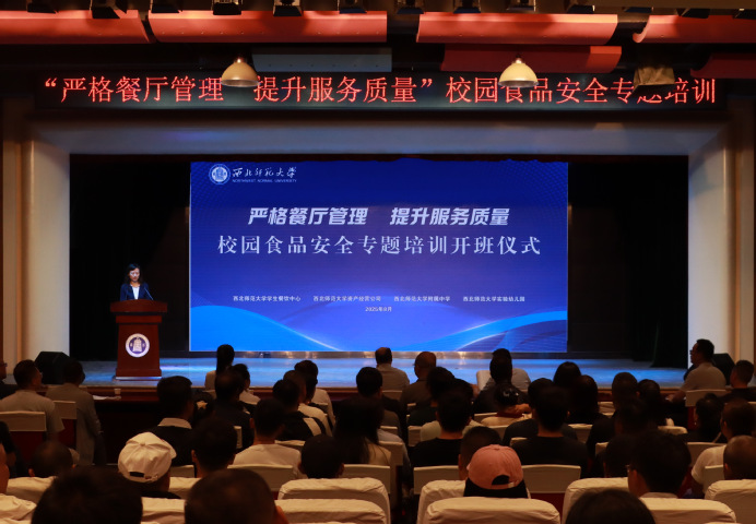 8月26日上午,西北师大举办2025年校园食品安全专题培训开班仪式暨首场报告会。副校长王文昇出席开班式并讲话。党委学生工作部(学生餐饮中心)、后勤保障部、资产经营公司、附属中学、实验幼儿园等相关单位负责人以及全校餐厅食品安全从业人员代表共计300余人参加培训。